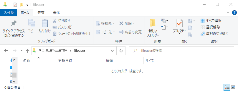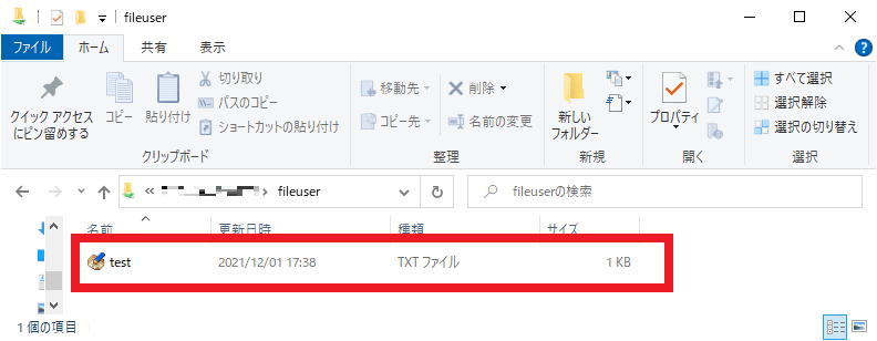 12. ユーザー(ここではfileuser)のディレクトリにテストでファイルを追加します。