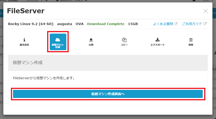 | イメージ | 標準テンプレート ー Rocky Linux 9.4 64-bit | |