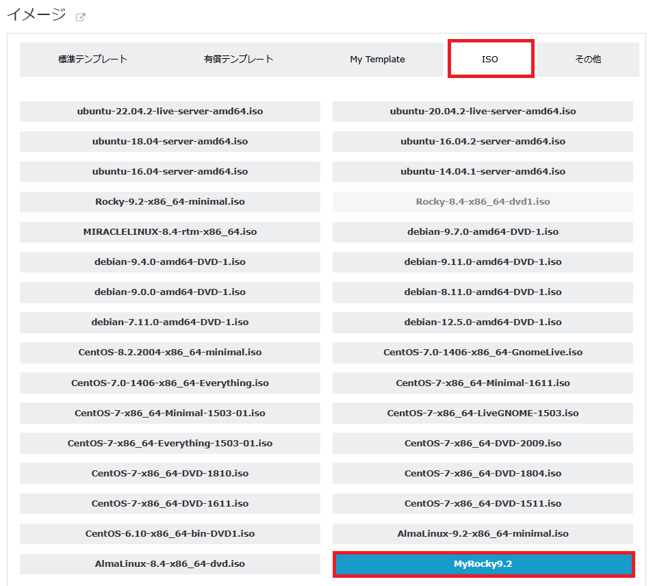 | ISO名 | 任意(今回はMyRocky-9.4を指定) | |
