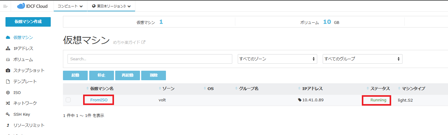 この章ではインターネットに公開されているISOイメージをIDCFクラウドにインポートします。