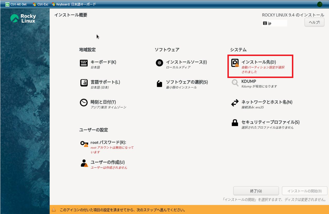 | URL | 任意(今回は以下からISOイメージを取得) https://dl.rockylinux.org/vault/rocky/9.4/isos/x86_64/Rocky-x86_64-minimal.iso |