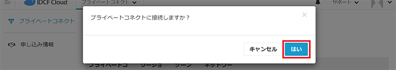 10. 「プライベートコネクトに接続しますか?」とポップアップ画面が表示されるので、[はい]をクリックします。