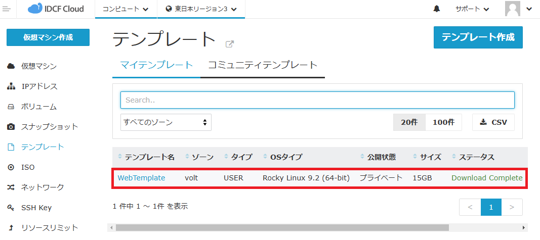 9. テンプレート一覧より、作成したテンプレートを確認します。