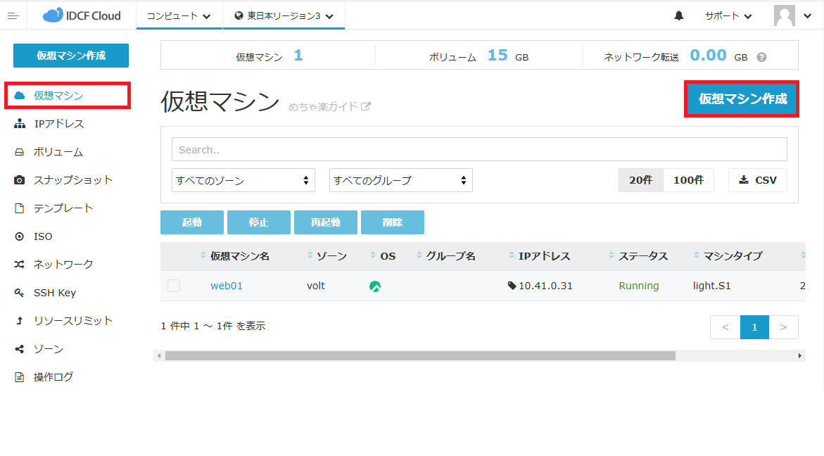 6. 「仮想マシン」画面に「web02」の仮想マシンが追加されます。