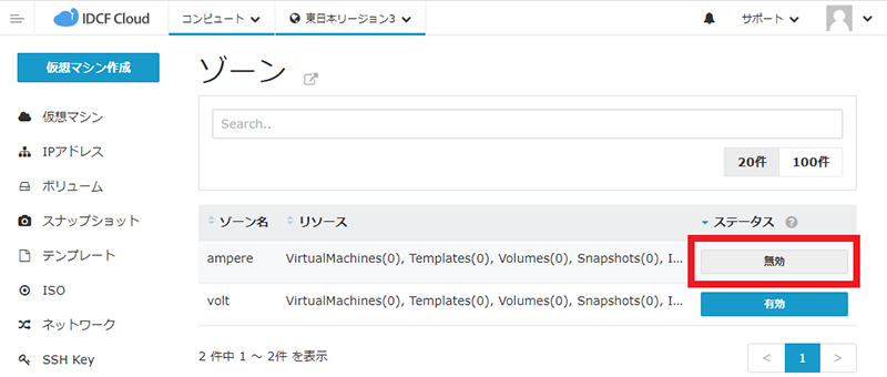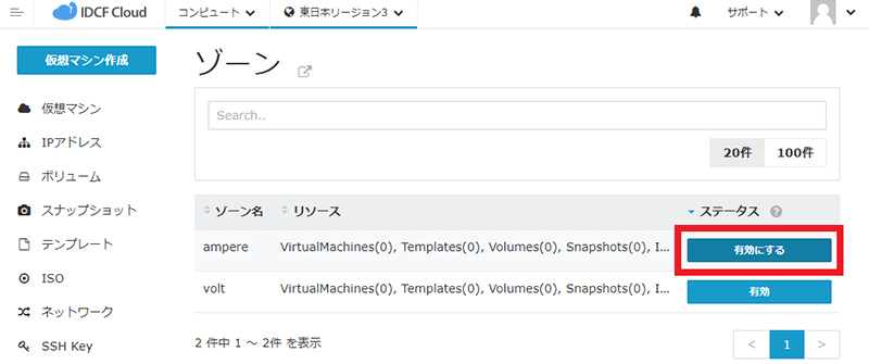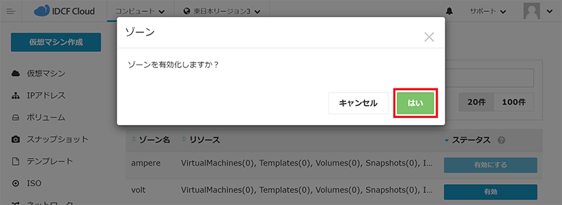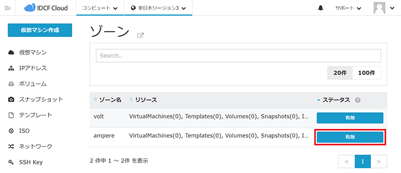 ゾーンの有効後、仮想マシン作成画面等で、当該ゾーンが選択できるようになります。