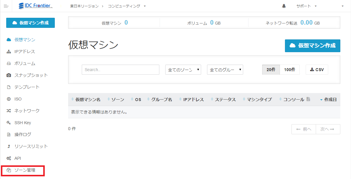 クラウドコンソールの「ゾーン管理」から新しいゾーンを追加してご利用ください。