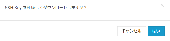 2.確認画面で「はい」を選択すると、鍵(テキストファイル)がローカルにダウンロードされます。