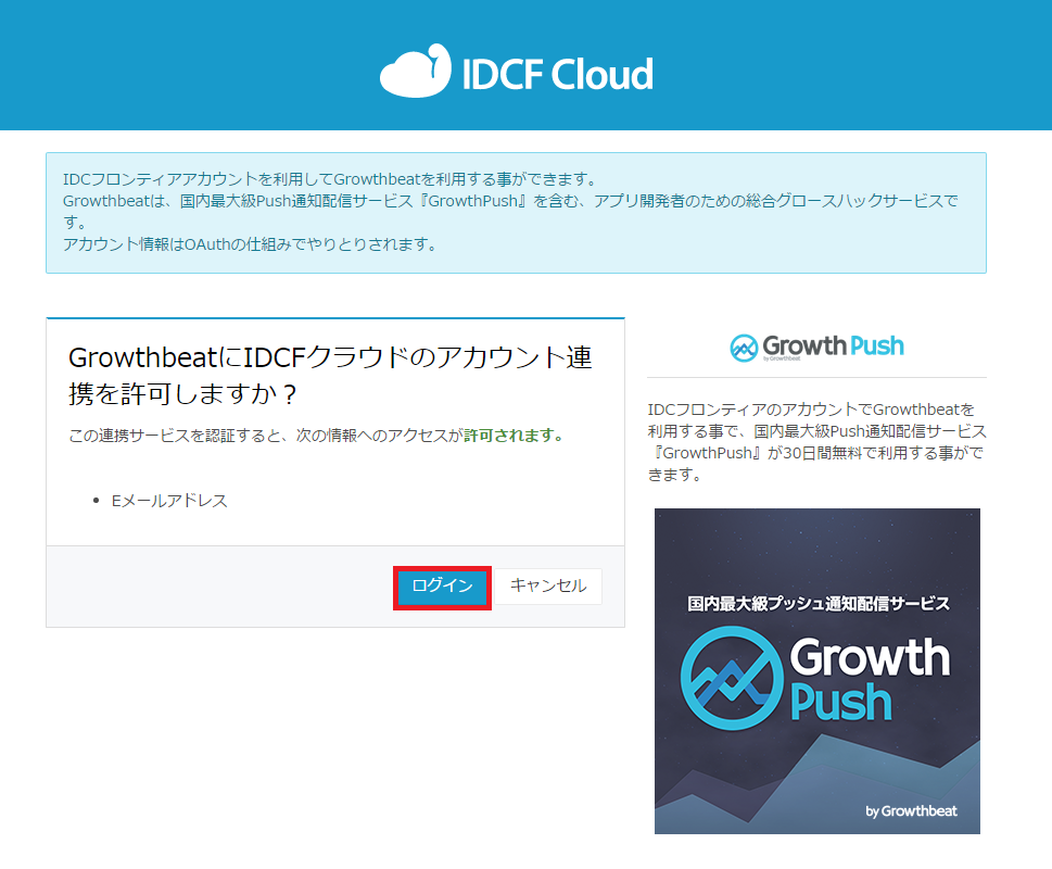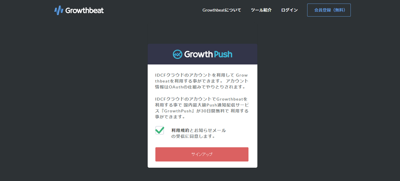 IDCFクラウドからGrowth Pushへのシングルサインオンに対応することで、国内最大級のプッシュ配信サービス「Growth Push」を利用する事ができます。