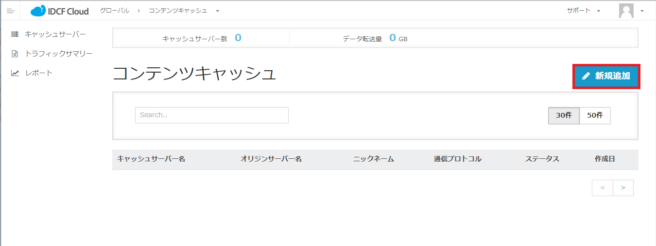 4. キャッシュサーバー一覧画面の右上にある「新規追加」からキャッシュサーバーを登録することができます。
