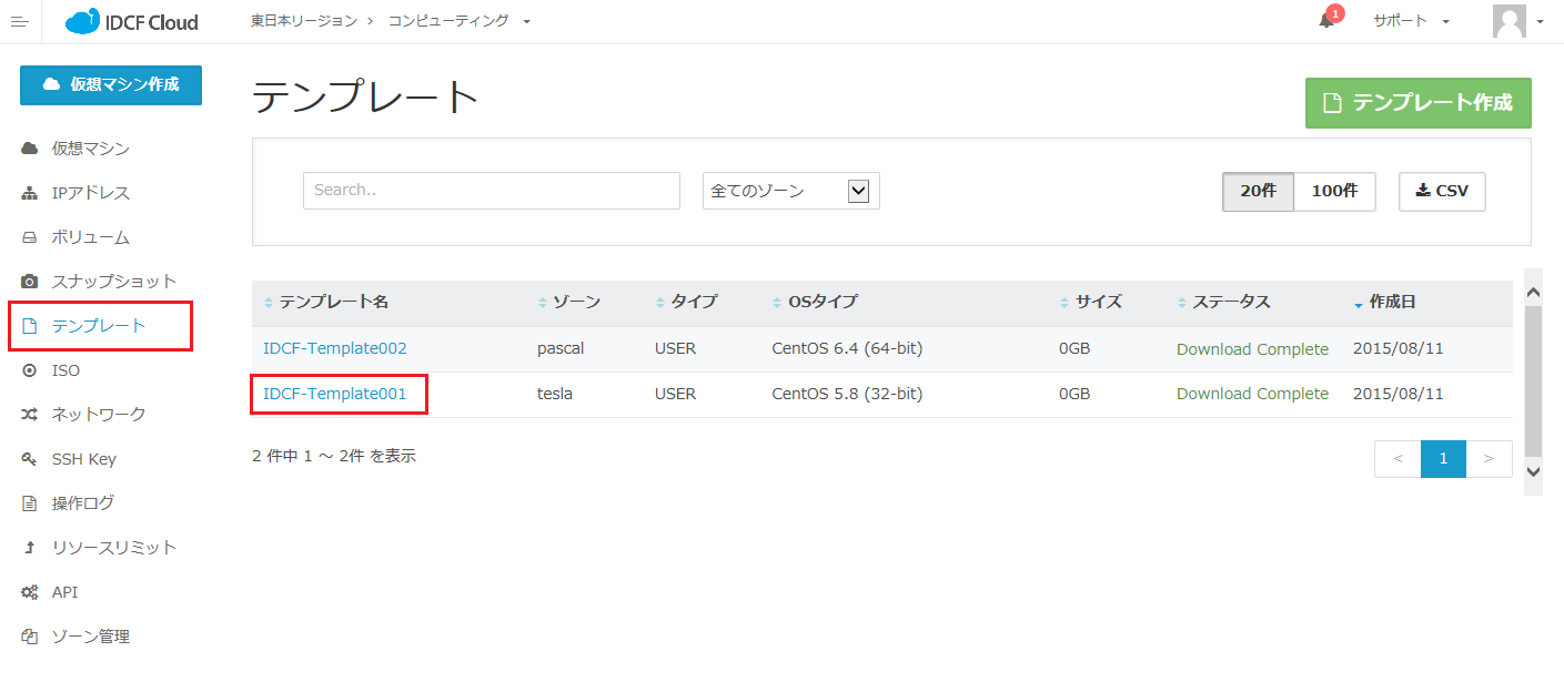 また、IDCFクラウド東日本リージョン1 teslaゾーン・jouleゾーンで以下の標準テンプレートが利用可能になりました。