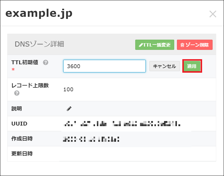 ネームサーバー切替のために設定していたTTLを600から任意の値に変更します。本手順では値を3600とします。TTL変更のやり方は「レコードごとに変更する」場合と「すべてのレコードをまとめて変更する」場合の二通りがあります。