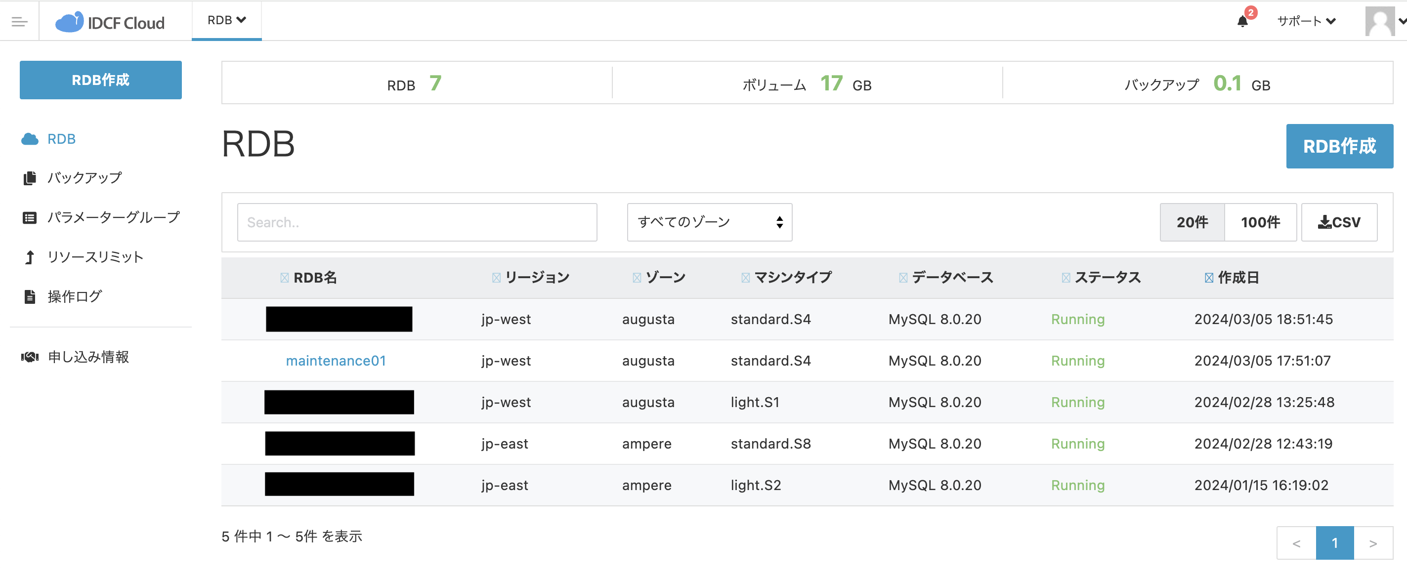 ※ 2つ目のメンテナンス完了後5日間はCentOS7版RDBを保持いたします。5日経過後にCentOS7版RDBは順次弊社にて削除予定です。