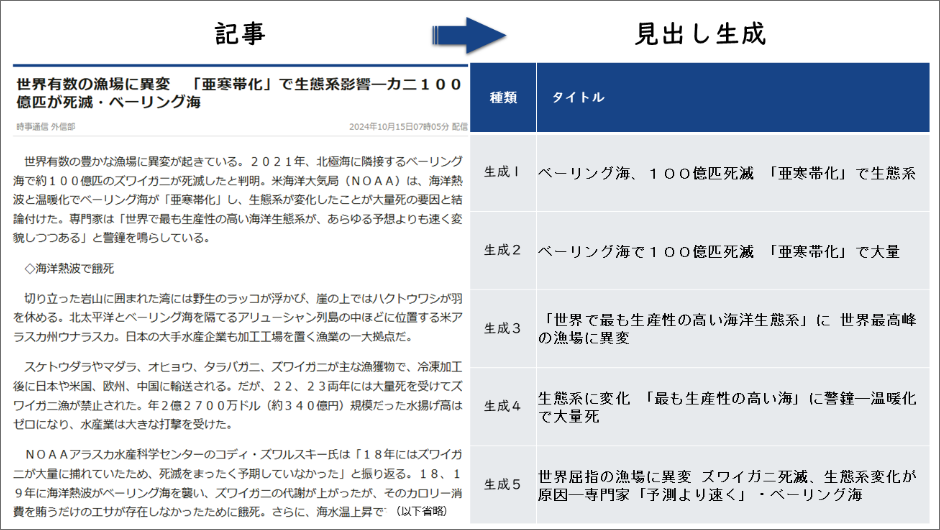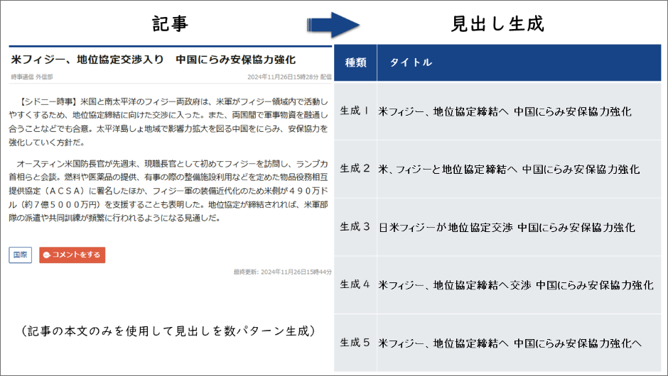 今後は、このモデルを活用し、記事作成時の見出し付けを支援するツールの実用化を目指します。このツールは、記者が見出しを作成する際の参考情報として役立つことが期待されています。