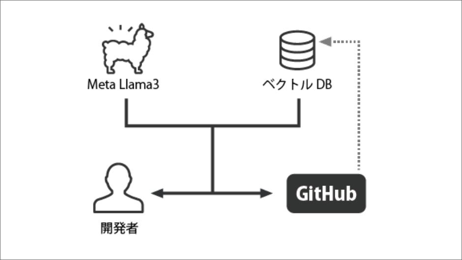 本プロジェクトでは、アプリケーションのソースコードや機能仕様書、そして過去にGitHub上で行われたコードレビュー情報をもとに、AIが自動でコードレビューを行うシステムを開発しています。