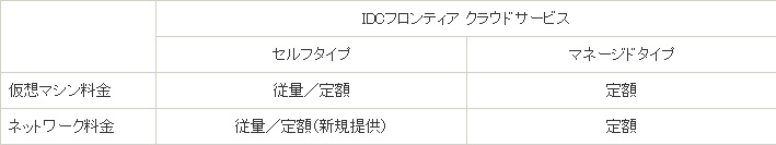 尚、IDCFクラウド セルフタイプのネットワーク定額プランの特長および利用料金は次の通りです。