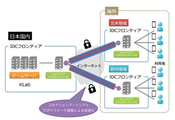 KLab株式会社(本社:東京都港区、代表取締役社長:真田哲弥、以下「KLab」)と株式会社IDCフロンティア(本社:東京都新宿区、代表取締役社長:中山一郎、以下「IDCフロンティア」)は、2013年12月から共同で「モバイルオンラインゲームの海外展開向け配信ソリューション」の研究に取り組んでまいりましたが、このたび中間成果として実証実験向けに開発した「AccelTCP(アクセルティーシーピー)」をオープンソース・ソフトウェアとして公開いたしました。