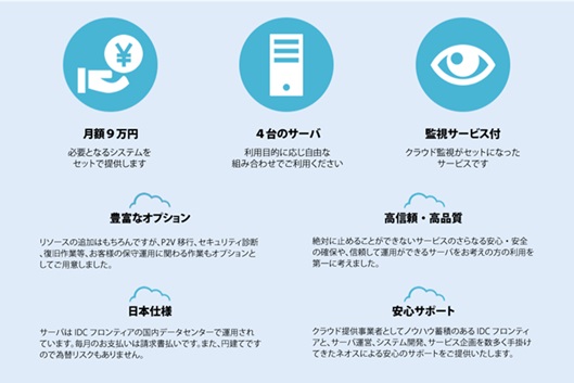 培ってきた構築/運用ノウハウを基に共同でビジネスを展開、月額固定9万円でクラウドサーバ4台と監視サービスをセットで提供