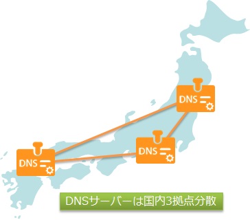 ・DNSサーバーは国内の広域3拠点に分散配置しシステムのBCPやDR対策にも有効