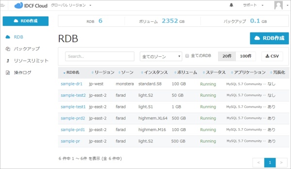 「IDCFクラウド RDB」の画面イメージ