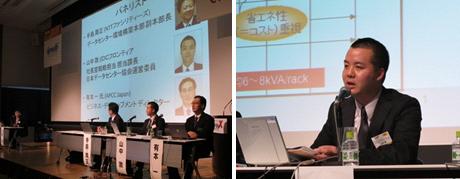パネルディスカッションでは、データセンター設計の現状と課題、データセンター内の機器の統合管理による効率化、今後データセンター運営の新しいトレンドのひとつとなるであろう外気空調の活用による省エネ効果の実現、また、日本データセンター協会で取組んでいるICT利活用によるエネルギーの効率利用についてなど、それぞれの視点や経験に基づいた発表を行い、データセンター事業の実態とその発展に要求される条件、解決すべき課題などについて議論を展開しました。