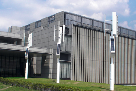 福岡県北九州市のデータセンター「アジアン・フロンティア」で、2011年9月から風力と太陽光を利用した発電によるハイブリッド型の街路灯が稼働いたしました。