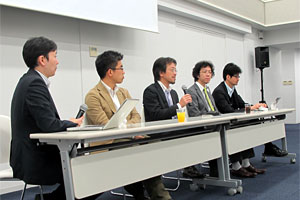 「2011クラウド特別座談会」と題し、雲屋株式会社の鈴木氏、ライトスケール・ジャパンの新藤氏、一般社団法人クラウド利用促進機構の荒井氏、NTTデータ先端技術の羽深氏を交えた座談会の形式で、クラウドにおける様々な角度からのディスカッションを行いました。