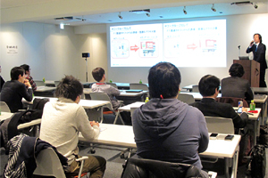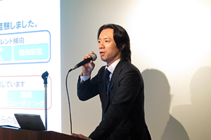 また、ビジネス推進本部営業2部の高橋健太郎より「広告・キャンペーンサイトでのクラウド事例やトレンド」と題して、企業向けの大規模Webキャンペーンでの例や、スマートフォンアプリからのアクセス、ソーシャルメディアからの流入など、実際の事例を交えながら紹介いたしました。