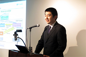 ビジネス推進本部の金井からは、「IDCフロンティアのクラウドをフル活用する"IDCF 3-Tierモデル"の解説」と題して、Webシステムの構成である「IDCF 3-Tier」について、運用を考えたServerTemplateや稼働中の環境などの紹介をいたしました。