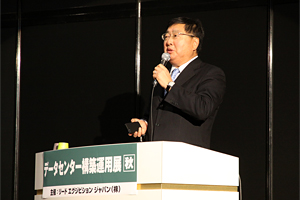 「日本の未来にデータセンターの果たすべき役割 データセンターの国際競争力とは」と題し、従来の携帯端末からスマートフォンやタブレットなどの高機能端末へ移行が進み、データ量が爆発的な勢いで増加を続けていく中、国内データセンターと海外勢との競争激化について述べました。
