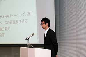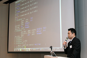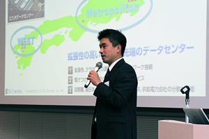 また、ビジネス推進本部 サービス開発部 部長の大屋からは、「クラウド活用の最新トレンド」と題し、データセンターやクラウドサービスとお客様の利用事例を交えながらご紹介し、ビジネス推進本部 新基盤開発部の阪田からは、IDCフロンティア 分散ストレージサービスのs3cmdによる操作やファイル投稿サービスでの利用を、スマートフォンからの映像投稿など実際のデモンストレーションと合わせてご説明いたしました。