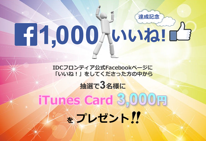 IDCフロンティア公式Facebookページ「1,000 いいね!」ありがとうキャンペーンのお知らせ