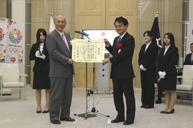 舛添都知事より、2020年オリンピック・パラリンピックの成功にかける想いをお話いただき、受賞企業には東京都のスポーツ推進の先導役として今後も取り組みを頑張っていただきたいとの激励を受けました。