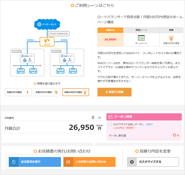 3.選んだプランの構成例とお見積り金額が表示されます。