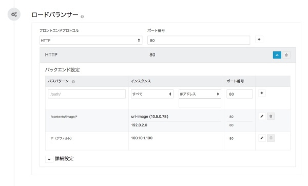 URI分散(パスベース)機能は、インフィニットLB新規作成、または設定変更時に、Configuration(バックエンド設定)から設定が可能です。